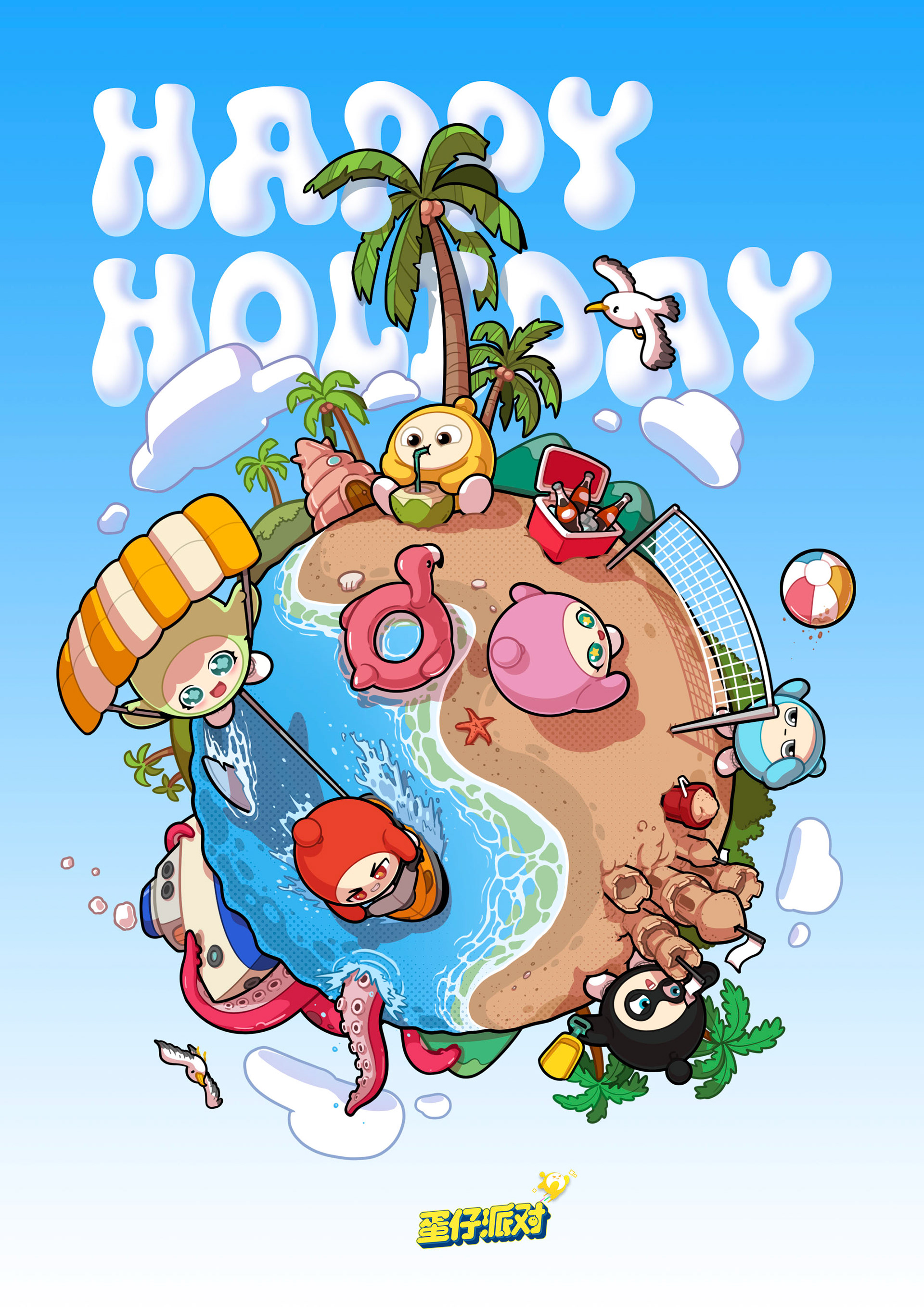 Eggy Party x 小红书REDLAND Report! A giant Eggy has been spotted in RED LAND! All Eggy buddies, attention! Eggy Island has parachuted into RED LAND! This summer, escape the heat and head to Flip Time Port to kick off the cool party mode! An Illustration for one of their summer event!