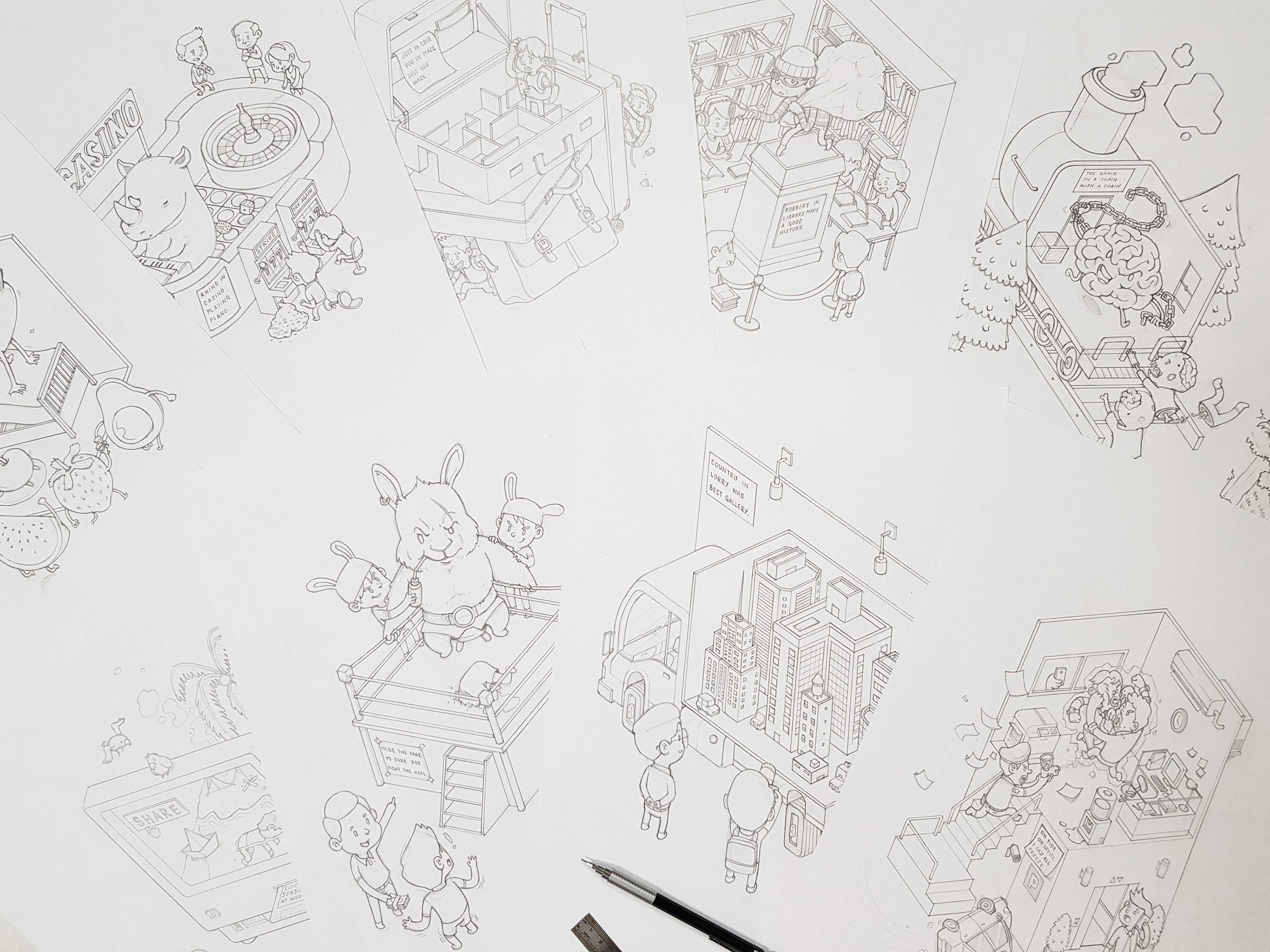 A personal project that used unrelated random words to create a rhyme with isometric illustration. FYI, rhyme is a words that have same last sound but different meaning. Hence, by combining those random words into isometric was so much challenging yet so fun!