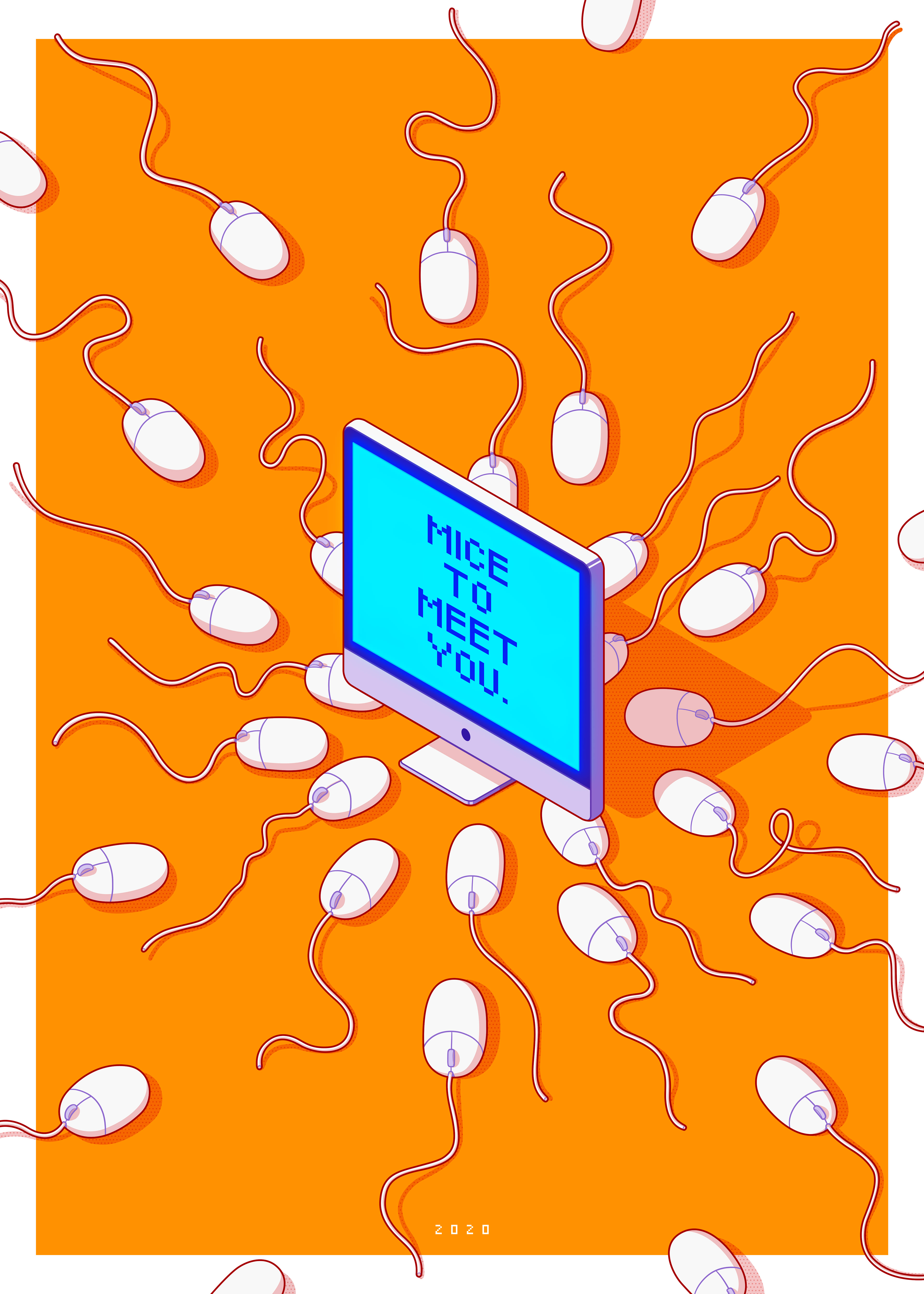 2020 is coming and it was the year of mouse in lunar calendar and also the beginning of the new decade! Rather than drawing a real mouse, I decided to draw a computer mouse instead to bring out the millennial era. If you can tell, they actually look like a sperm that about to create new start to the new decade. Let's us all welcome 2020 soon and mice to meet you & have a mice day!