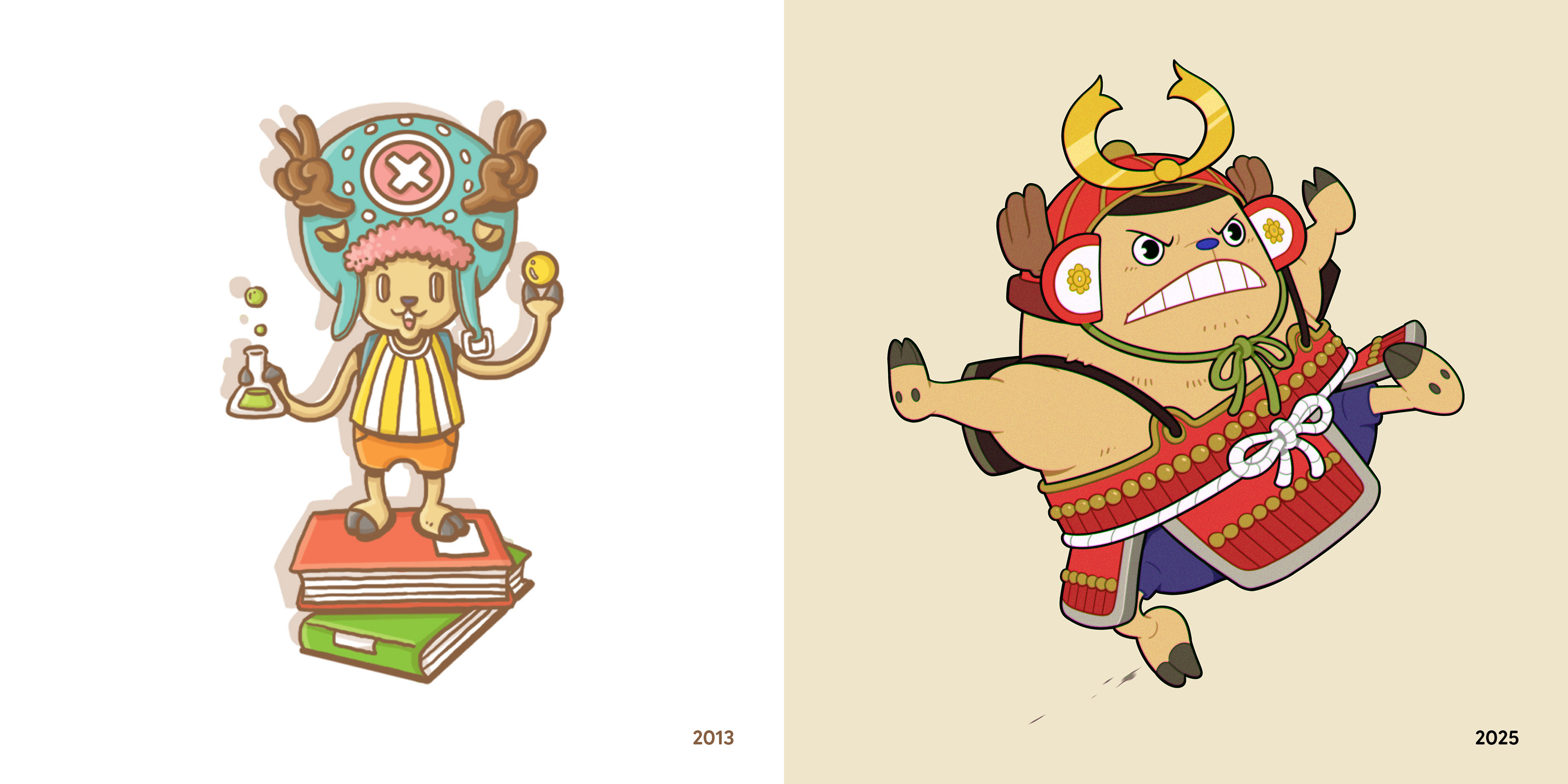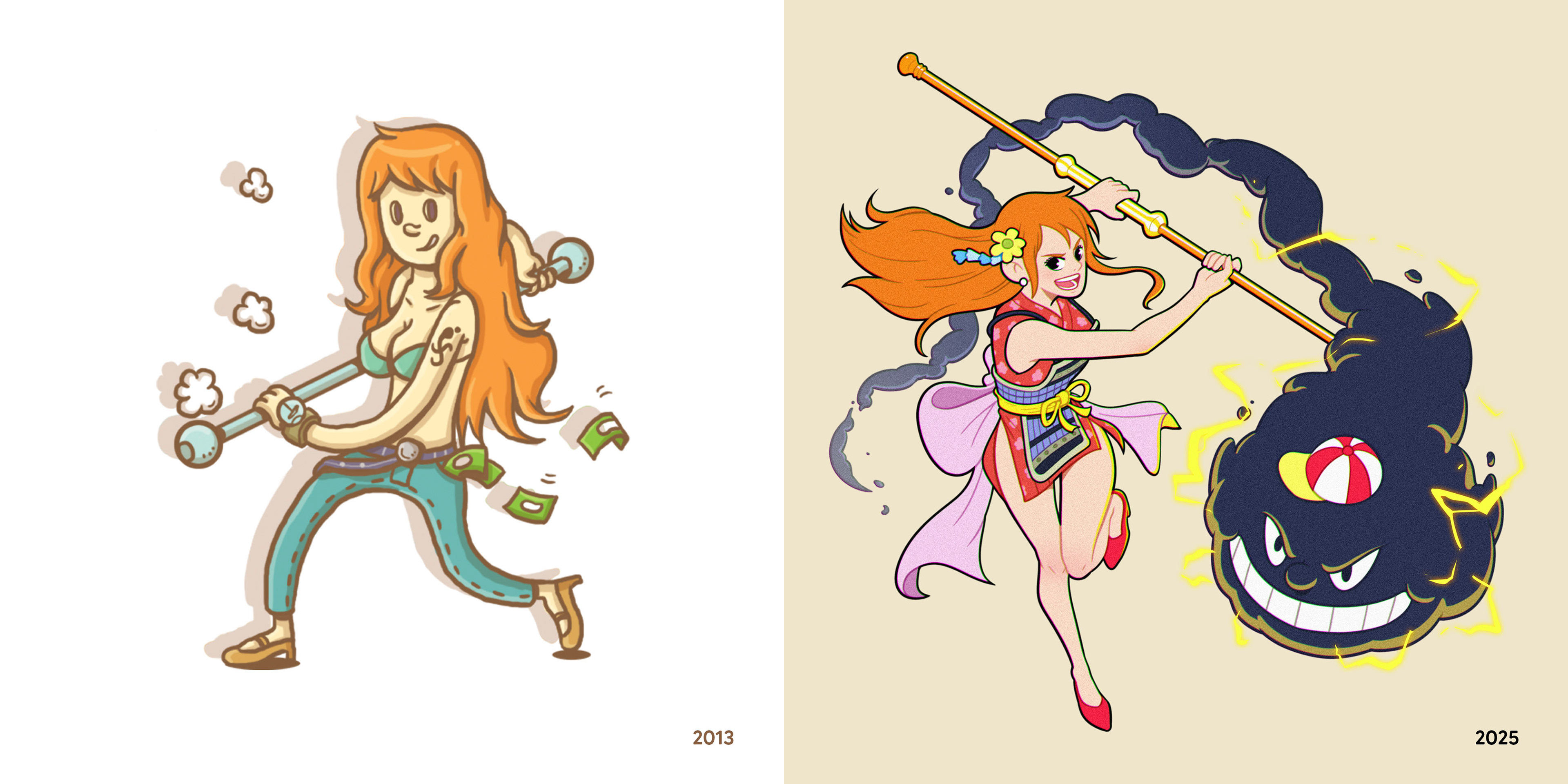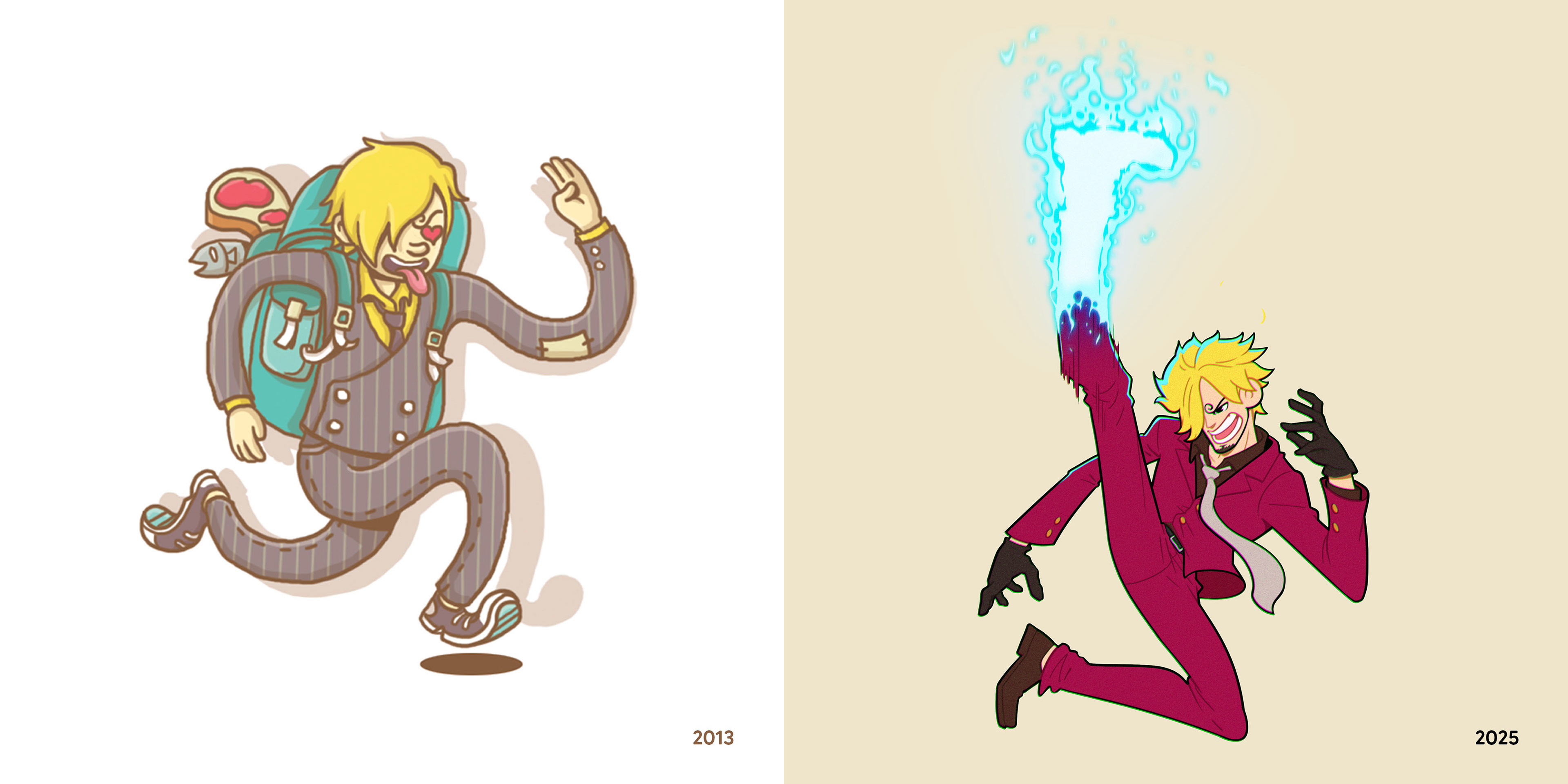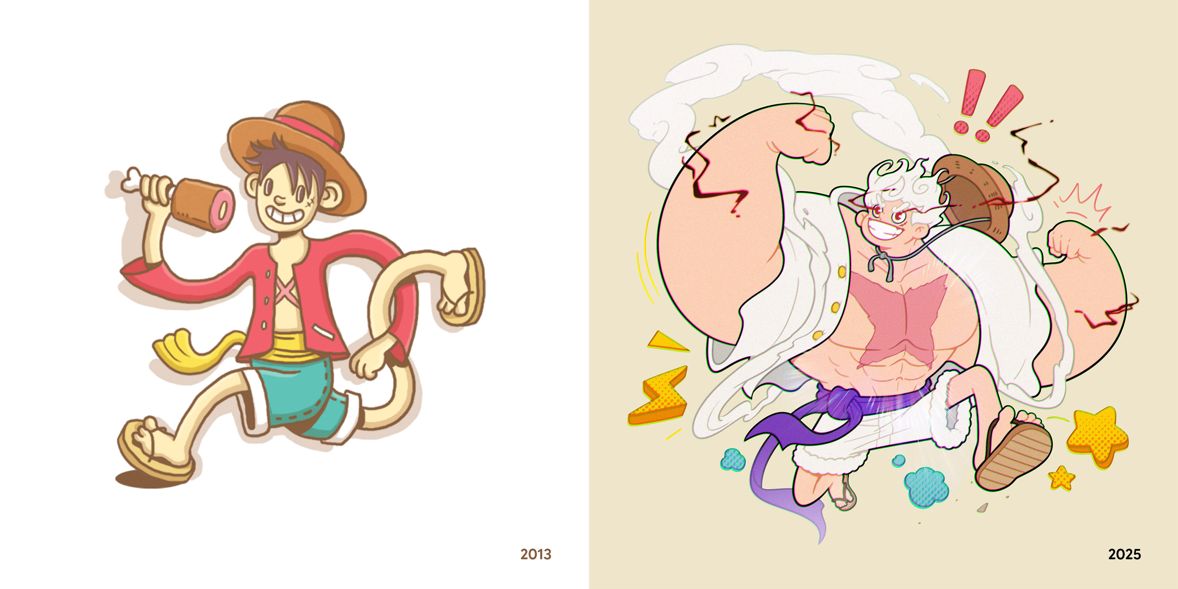 I recently got a commission for a One Piece fan art, and the client mentioned how much she liked my previous One Piece work. For a moment, I was confused—when was the last time I even drew One Piece? Then I realized she meant a piece I made over a decade ago. Seeing how much the Strawhats have grown since then made me feel that I, as a fan, should grow too. So I decided to remake the series I drew 12 years ago to see how much I’ve improved. Enjoy the sail! Bon voyage!